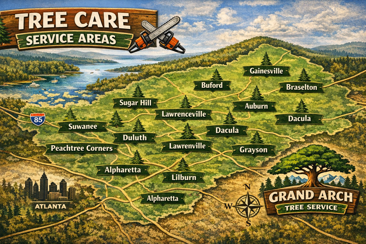 Proudly serves homeowners across Buford, Lawrenceville, Alpharetta, Lilburn, and Norcross, along with surrounding areas like Suwanee, Duluth, Snellville, Sugar Hill, and Peachtree Corners. Our service area also includes Dacula, Grayson, Loganville, Braselton, and Auburn, allowing us to cover much of Gwinnett County and North Atlanta. Whether you need routine tree care or emergency removal, our team is ready to respond quickly and deliver dependable service throughout these communities with professionalism, experience, and a commitment to quality work.